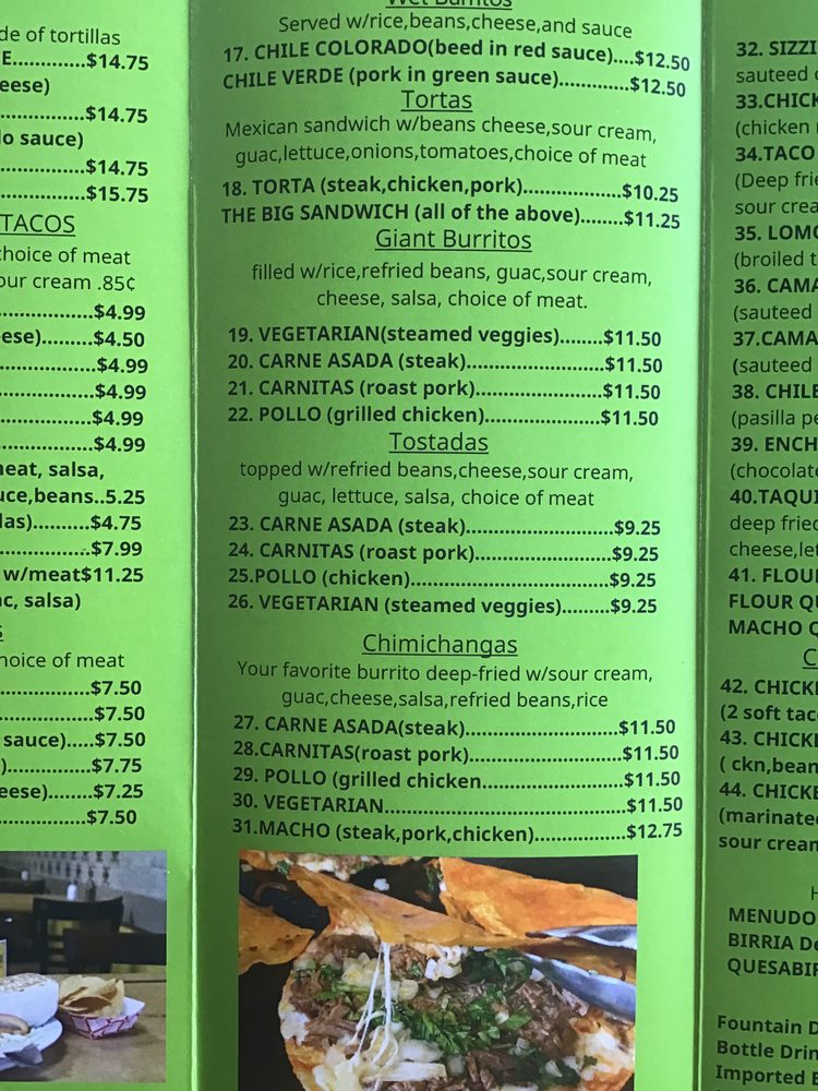 For taco lovers, options like Carne Asada or Lengua offer authentic flavor with every bite. Don’t miss the grilled veggie-stuffed burrito, a customer favorite praised for its freshness and vegetarian-friendly ingredients.